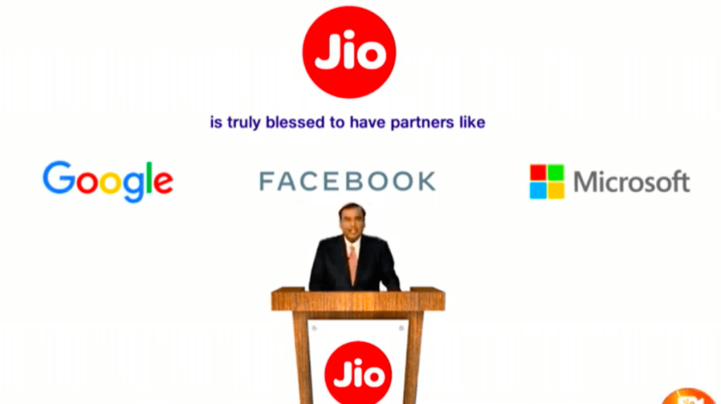 - Name one company apart from Jio which has Google, Fb and Microsoft as strategic partner. Any one will do.